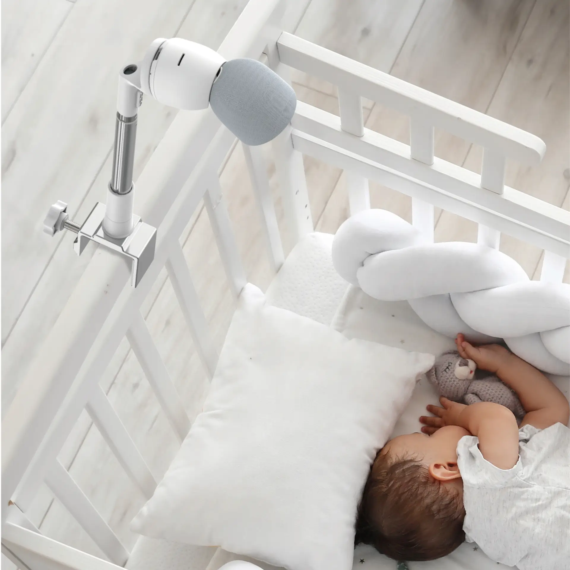 Arenti teleskooppikiinnikkeen avulla kamera voidaan kiinnittää turvallisesti pinnasängyn reunaan ilman poraamista. Säädettävä korkeus auttaa saavuttamaan laajemman näkökentän, jotta vauvaa on helppo ja selkeä seurata.